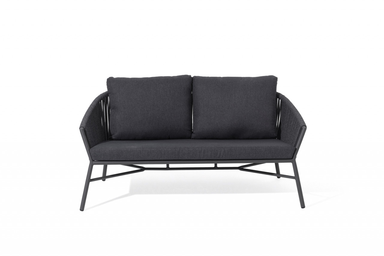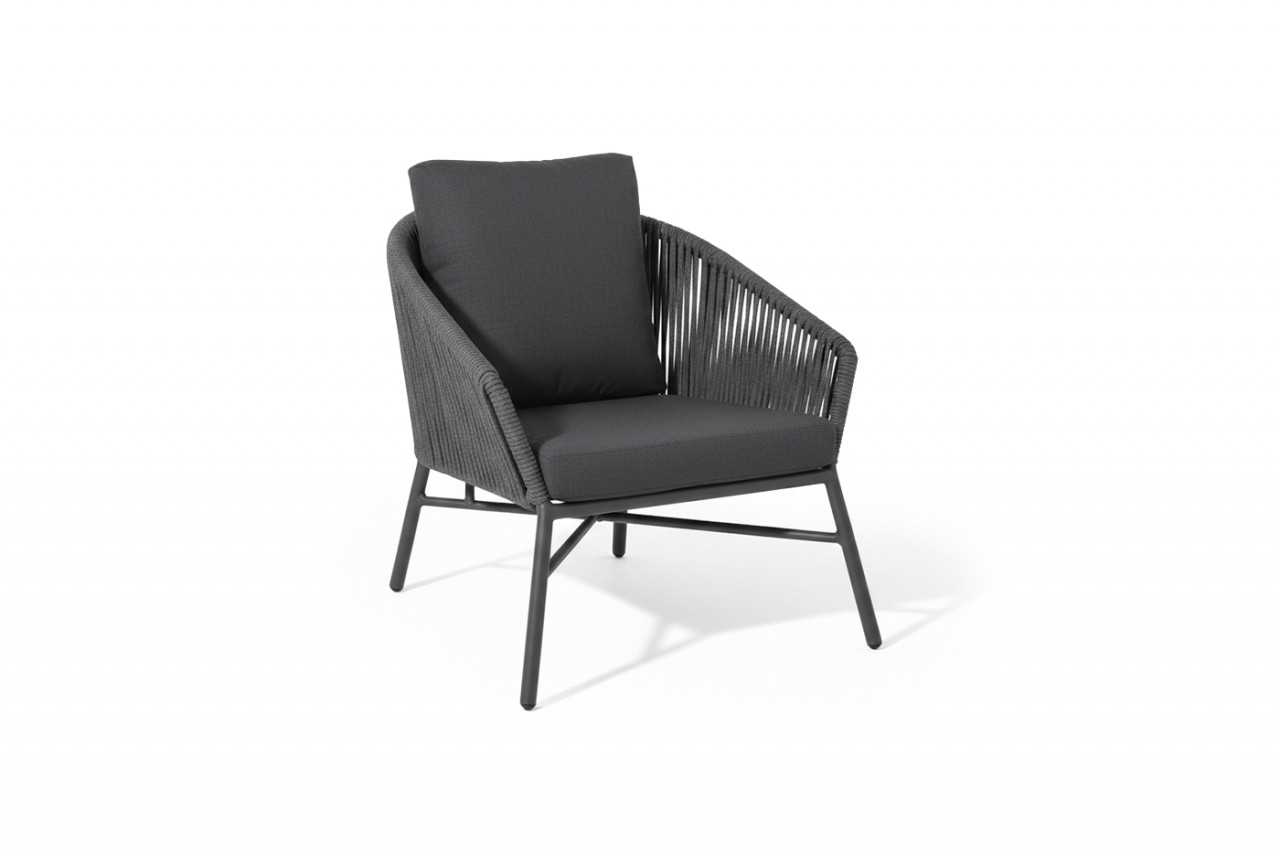 Una sola corda, come fosse un’arpa, gira attorno a questa seduta dal sapore informale. un classico da esterno rivisitato con l’attenzione a un dettaglio, che lo rende un arredo di avvolgente comfort.
