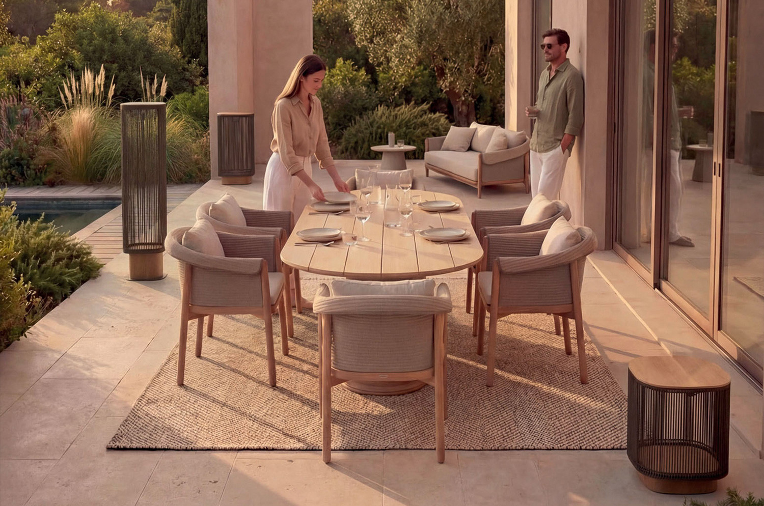 · Piano del tavolo: Legno massello di teak FSC 100%