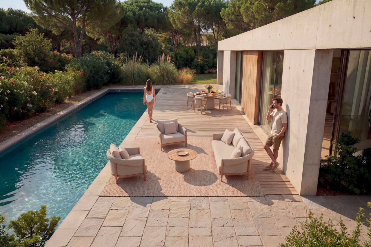 · Piano del tavolo: Legno massello di teak FSC 100%